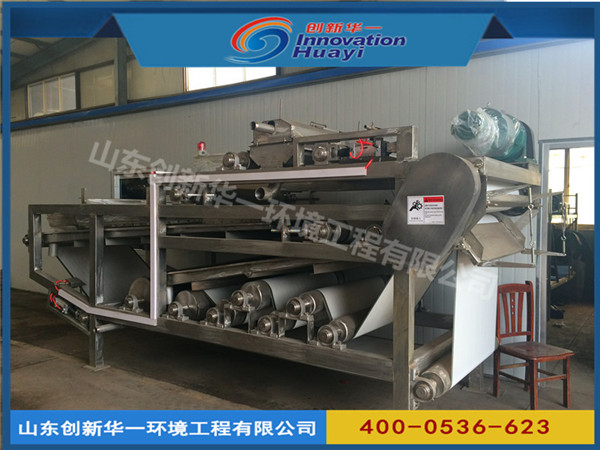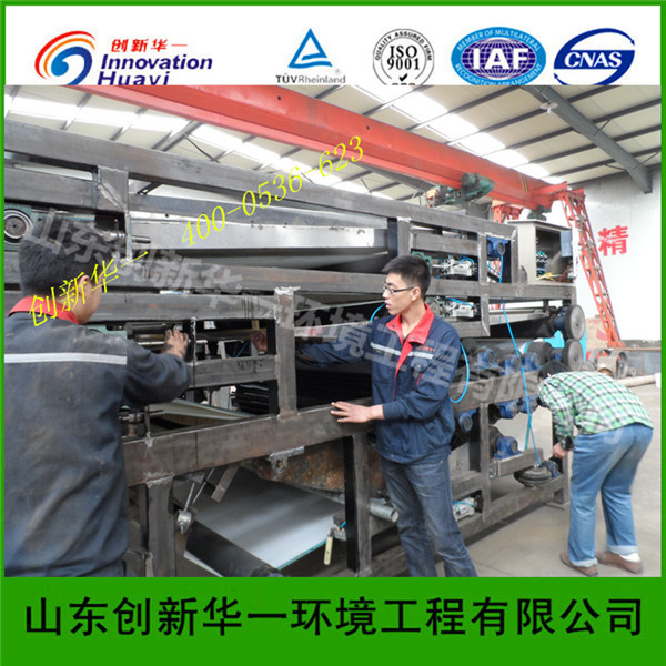 1、 洗塑污泥脫水機(jī)是在普通帶式脫水機(jī)的基礎(chǔ)上增加一套預(yù)濃縮脫水段將污泥濃縮與脫水段合于一本的新型過濾設(shè)備。其最為明顯的特征是具有三張濾網(wǎng),一張為濃縮所有,有單獨驅(qū)動和調(diào)節(jié)裝置,以接受污泥的負(fù)荷。