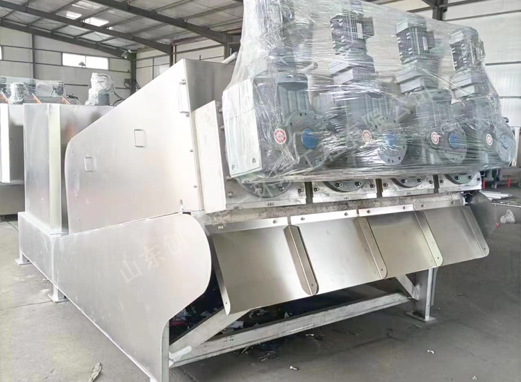 機(jī)架部分由機(jī)架和濾液槽由型鋼焊接而成,整體焊接好,剛性好,是一個(gè)整體,濾液槽用來(lái)收集疊螺過(guò)濾本體壓濾下來(lái)的濾液。