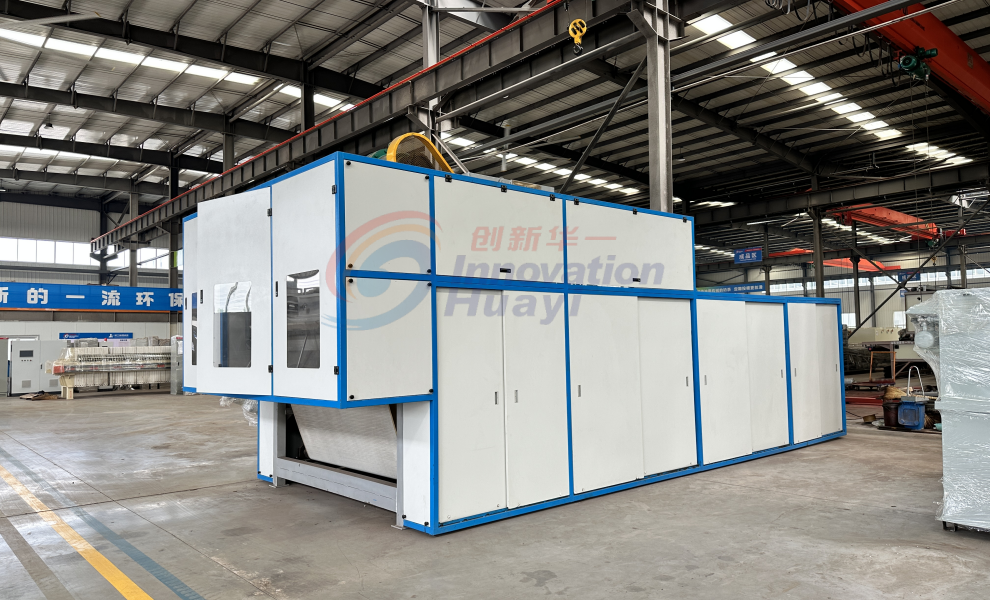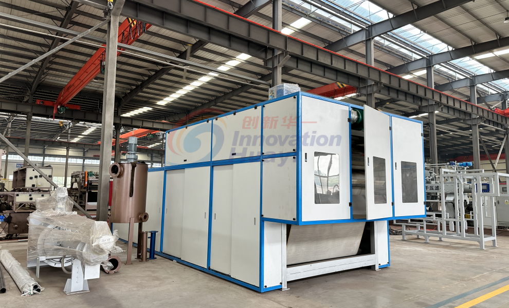 該設備是我公司在傳統(tǒng)帶式壓濾機基礎上,研發(fā)生產(chǎn)的全新一代污泥深度脫水機。設備增加了液壓裝置、污泥布料裝置,優(yōu)化了調偏裝置、沖洗裝置和軸承座。新型超高壓帶式污泥脫水機脫水能力更強,可以在不添加或者少添加輔料的情況下,將污泥含水率降至60%以下。