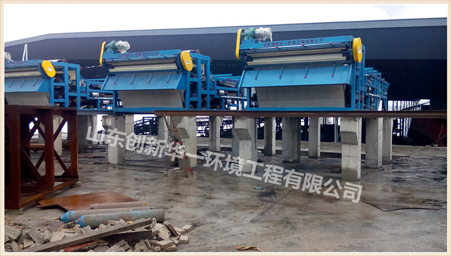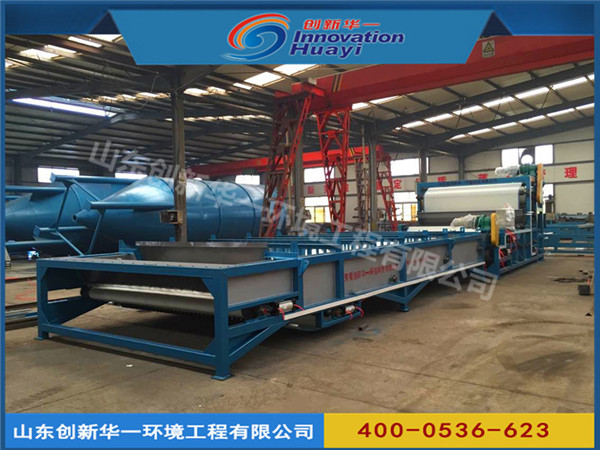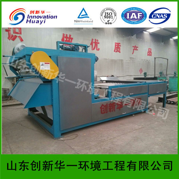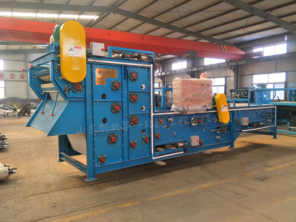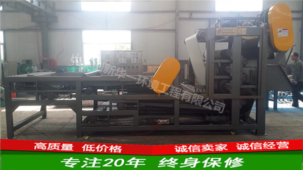 1、 洗塑污泥脫水機(jī)是在普通帶式脫水機(jī)的基礎(chǔ)上增加一套預(yù)濃縮脫水段將污泥濃縮與脫水段合于一本的新型過濾設(shè)備。其最為明顯的特征是具有三張濾網(wǎng),一張為濃縮所有,有單獨驅(qū)動和調(diào)節(jié)裝置,以接受污泥的負(fù)荷。
