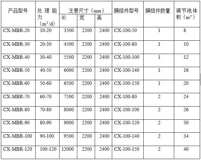 四、MBR膜一體化設備主要參數: